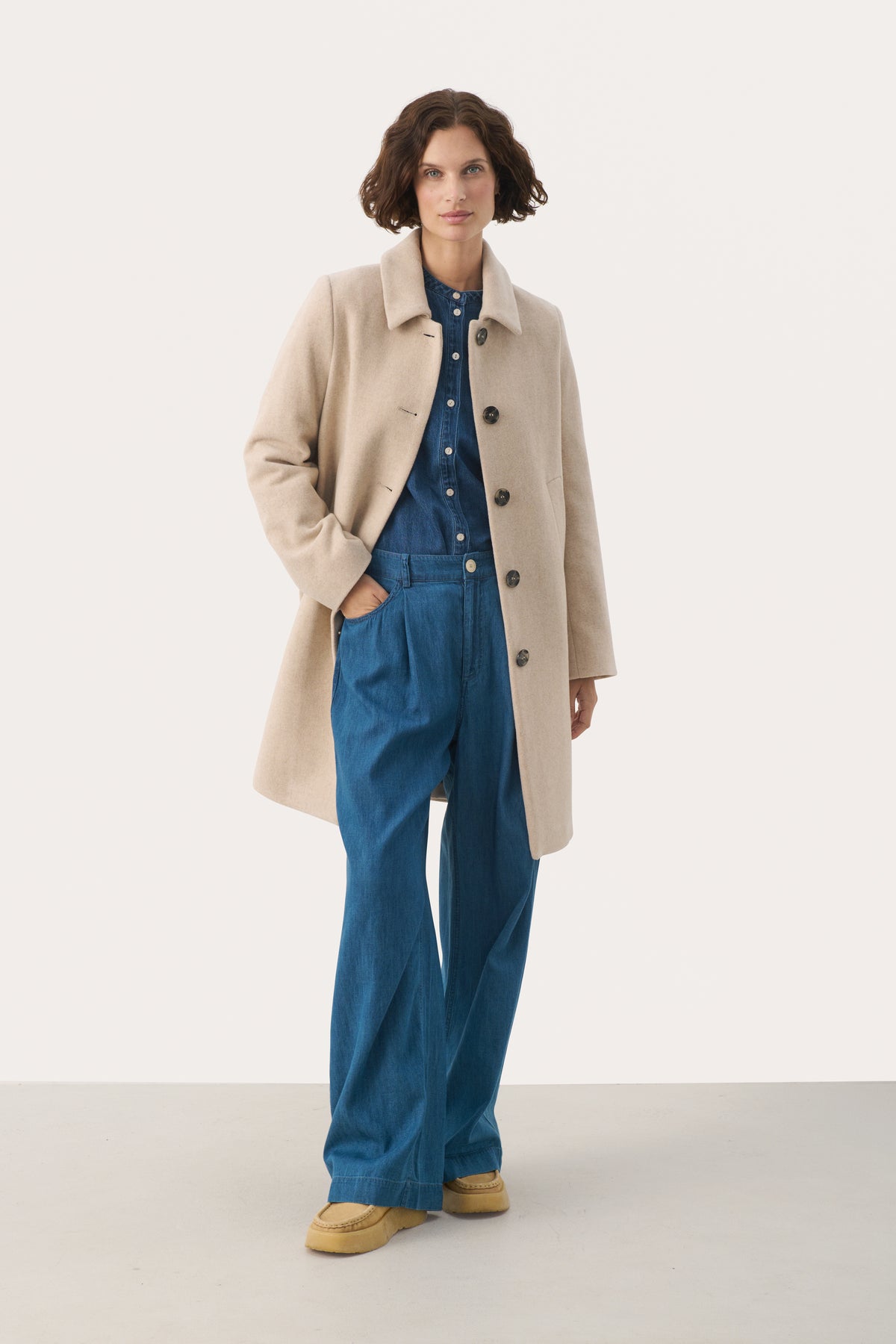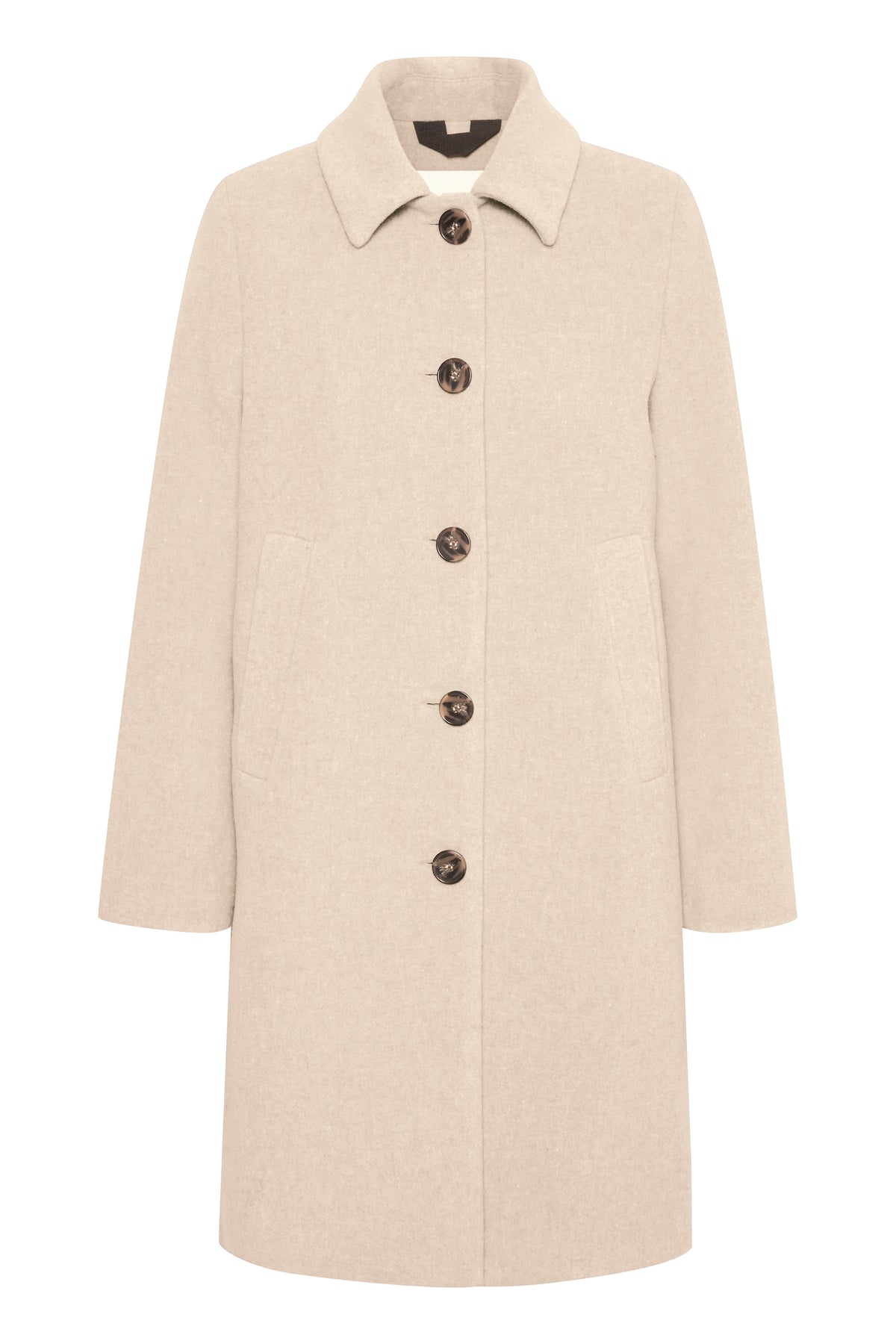 Sa couleur crème/beige est à la fois tendance et intemporelle. Profitez de son col chemise et de sa longueur genoux pour une allure sophistiquée. Les 4 boutons et les poches ajoutent une touche pratique à ce manteau raffiné.