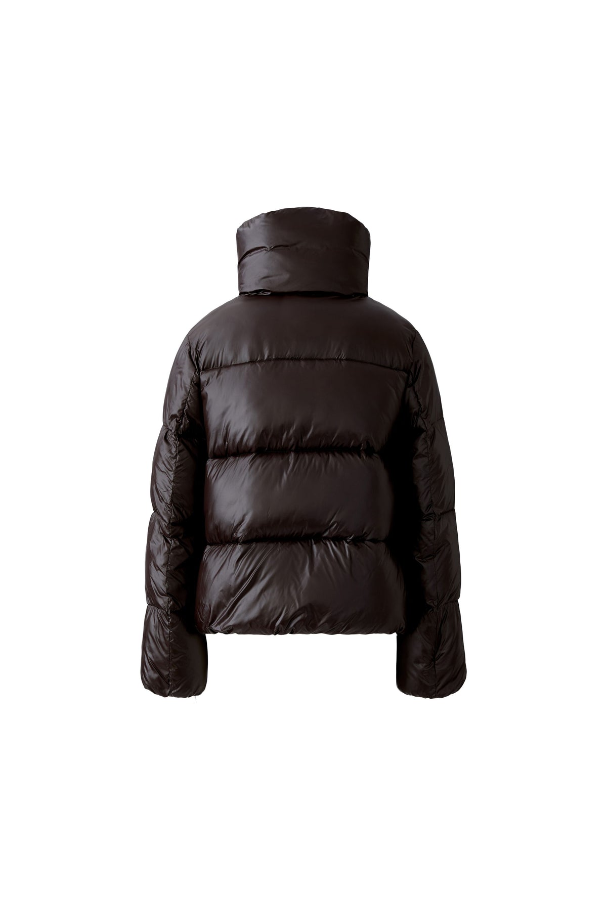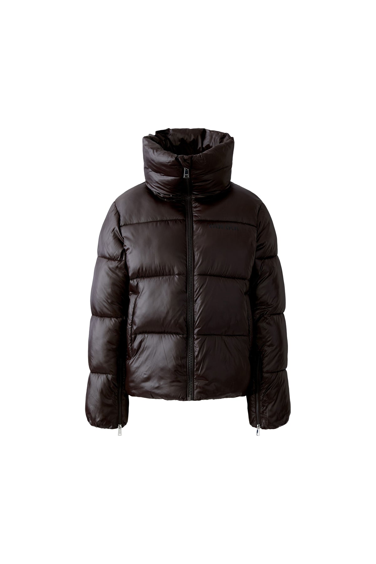 Manteau court matelassé avec col cheminée, fermeture éclair et poches.